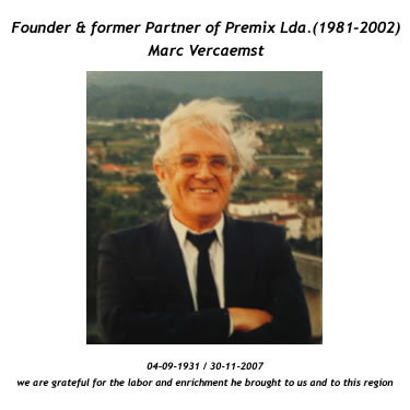 Portuguese company with Belgian roots, created by Marc Vercaemst, our former partner, an inspired business man and an excellent nutritionist, and by Ingrid Van Dorpe and José Marques da Cunha, with its headquarters and facilities operating at, and only from Viana do Castelo - Portugal. Based on the acquired experience and learning of its founders, the company developed knowledge on animal nutrition and rearing, in Portugal and several other E.U. countries as well as in Asia and South America .
